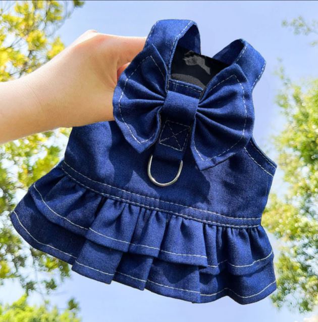 Джинсовое платье (Синее с бантом, L)