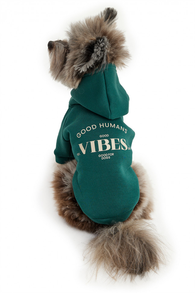 LionPets толстовка Good humans good vibes (S (спина 23см), зеленая)