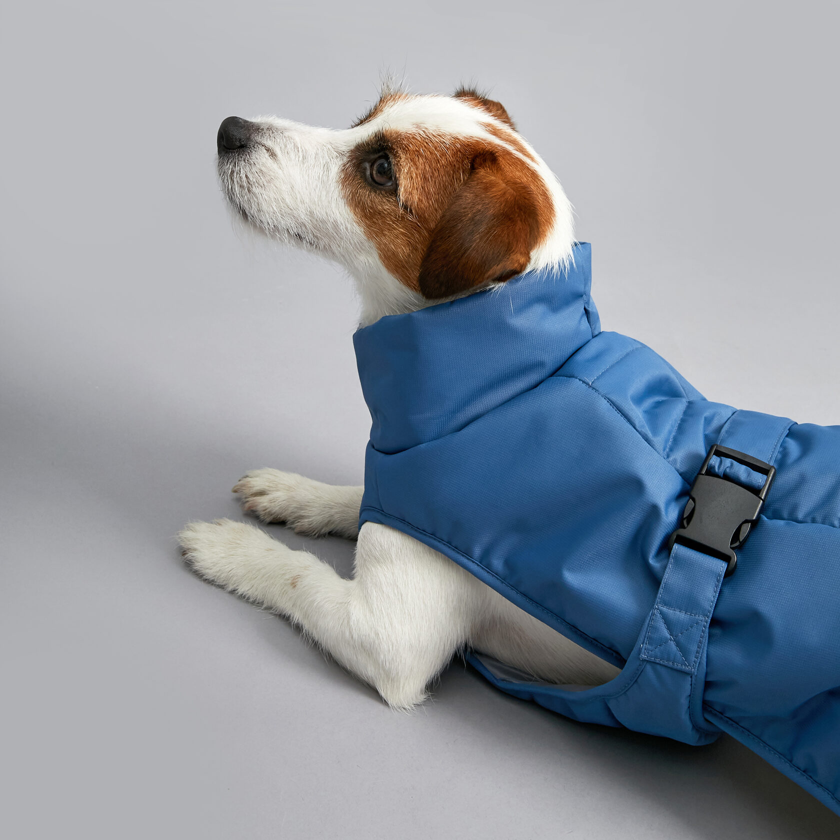 Попона для собак предназначена для прогулок в холодное время года, главной особенностью является то, что она максимально быстро одевается, при этом оставляя собаке максимальную свободу движений и сохраняет тепло, защищает от неблагоприятной погоды. Верхний слой попоны Muzzle выполнен из высококачественной мембраны с высокими показателями 7000/7000, особая структура мембраны обладает водоотталкивающими, ветрозащитными свойствами, но в тоже время пропускает через себя водяной пар, это позволяет телу собаки «дышать». В качестве утеплителя мы выбрали синтепон с плотностью 200 гр, который отлично сохраняет тепло, обладает легкостью, долговечностью, а также отличной воздухопроницаемостью. Сочетание качественной мембраны и плотного утеплителя позволяет гулять при температуре воздуха до -15 градусов, в зависимости от индивидуальных особенностей породы и шерстного покрова собаки. Попона имеет гладкий подклад, имеются регулируемые резинки под задние ножки. Модель попоны является унисекс, подходит как для мальчиков, так и для девочек.