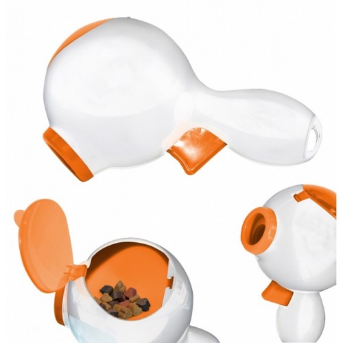 Развлекательная игрушка-пистолет для лакомств. Легко заполняется сухим лакомством, рекомендованный размер диаметра вкусняшек до 1см., дальность выстрела до 3-х метров. Материал: Пластик Бренд Duvo+ (Бельгия)