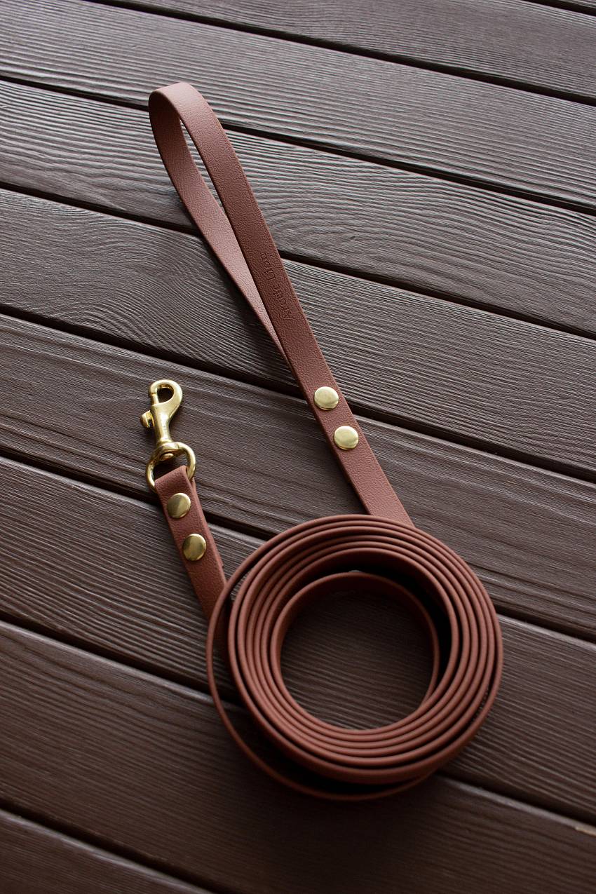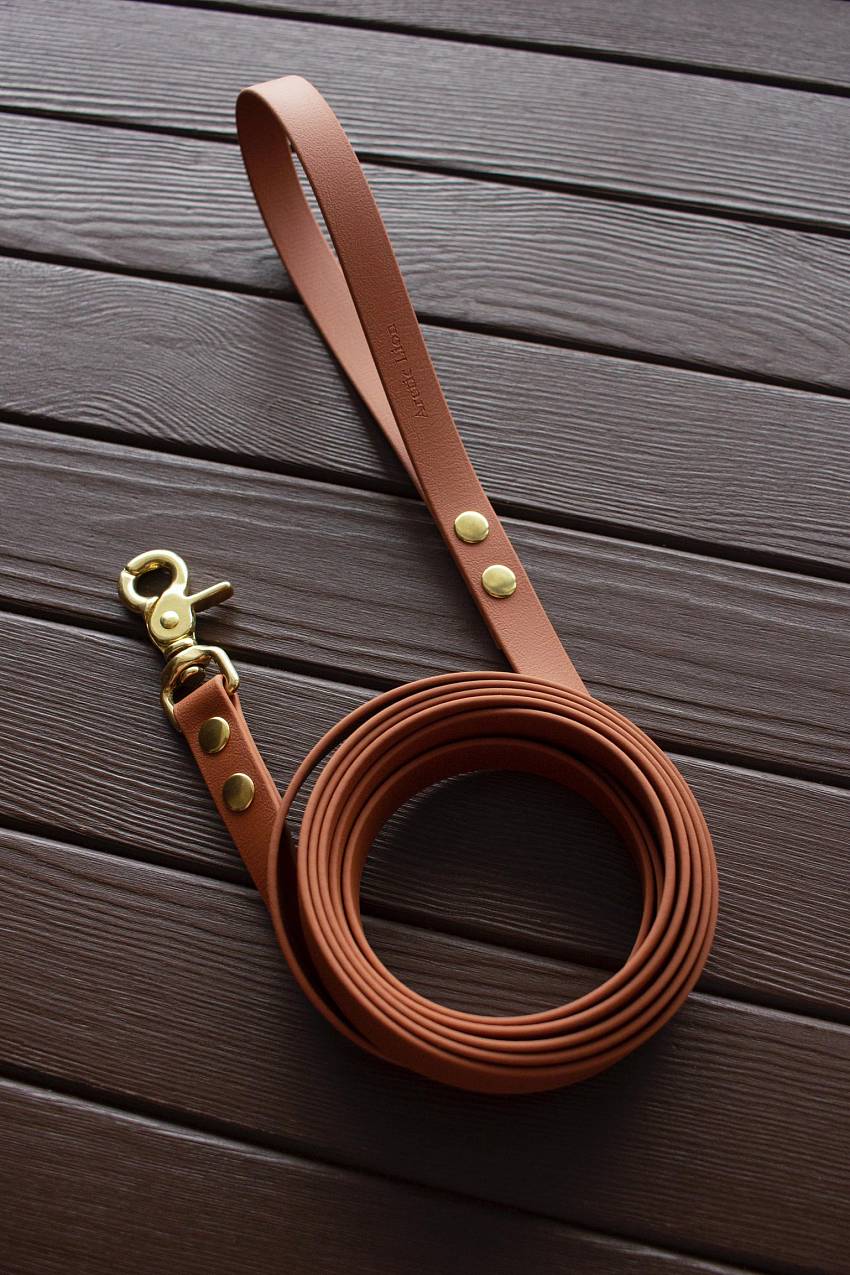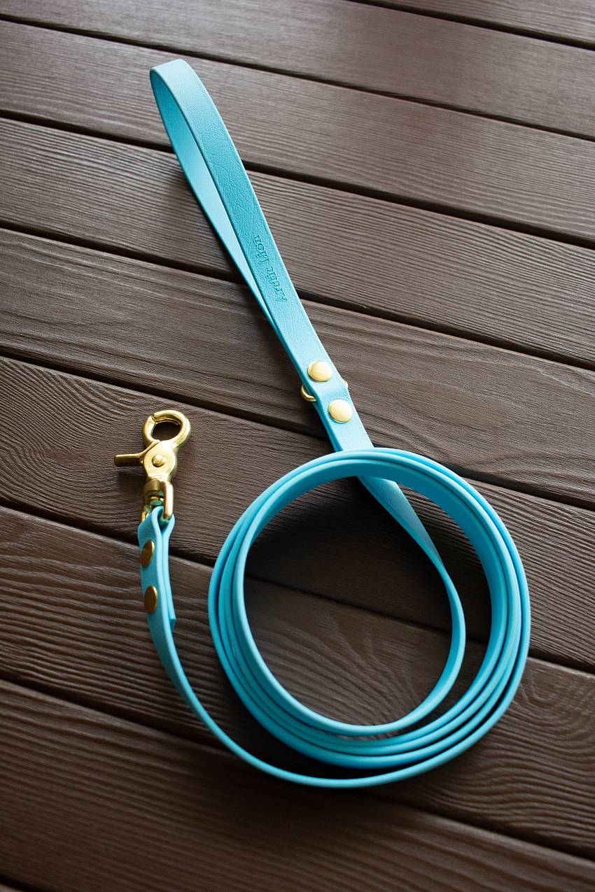 Биотан – высокотехнологичный материал, который выгодно отличается несколькими преимуществами: материал не выгорает на солнце и хорошо зарекомендовал себя при низких температурах (полная гибкость сохраняется до -25 ⁰С). Поводок из биотана совершенно не меняет внешний вид при интенсивной эксплуатации. К тому же обладает особой прочностью, гибкостью, влаго- и водостойкостью. Он легко очищается и выдерживает большие нагрузки. Обратите внимание! На фото большой карабин. Маленький карабин выглядит иначе.