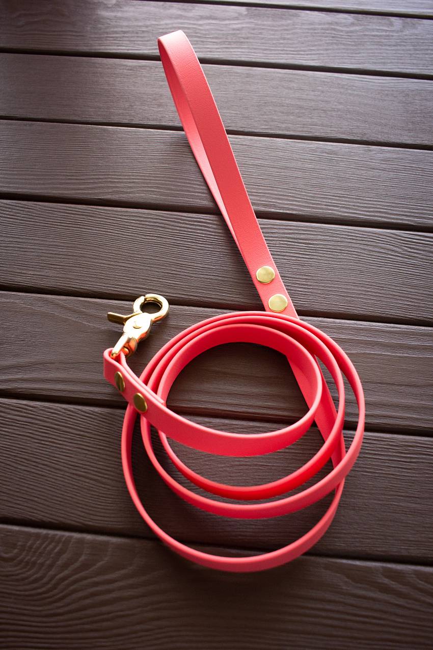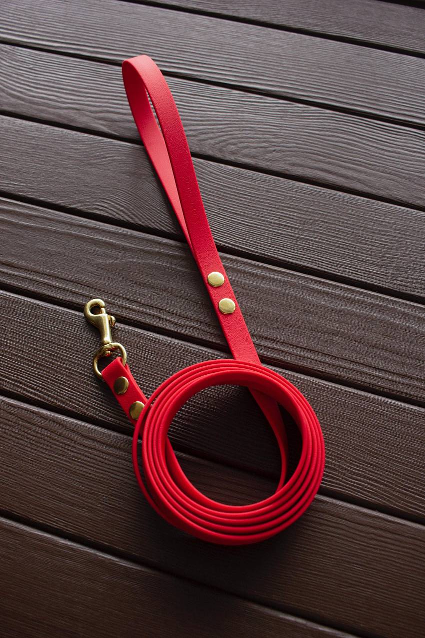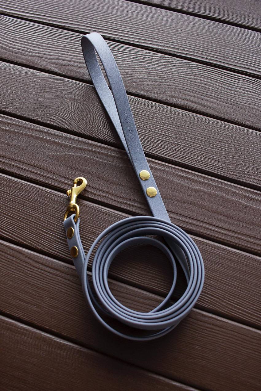Биотан – высокотехнологичный материал, который выгодно отличается несколькими преимуществами: материал не выгорает на солнце и хорошо зарекомендовал себя при низких температурах (полная гибкость сохраняется до -25 ⁰С). Поводок из биотана совершенно не меняет внешний вид при интенсивной эксплуатации. К тому же обладает особой прочностью, гибкостью, влаго- и водостойкостью. Он легко очищается и выдерживает большие нагрузки. Обратите внимание! На фото большой карабин. Маленький карабин выглядит иначе.