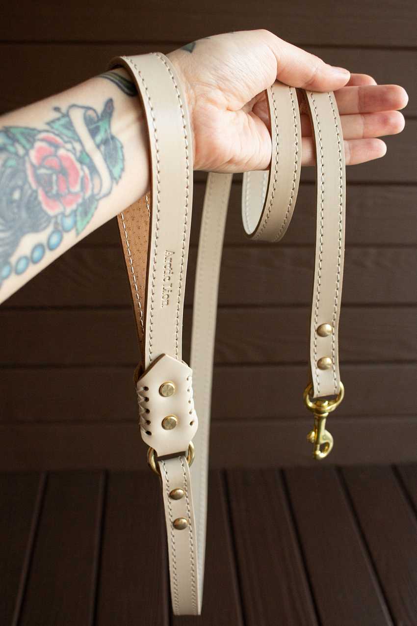 Цельнокожаный поводок удобно лежит в руке – не скользит, не режет кожу и очень приятный на ощупь. Обе стороны основы поводка имеют лицевое водоотталкивающее кожаное покрытие. Такой поводок обладает повышенной прочностью. И, благодаря технологии производства, гибкость и толщина не отличается от привычной.
