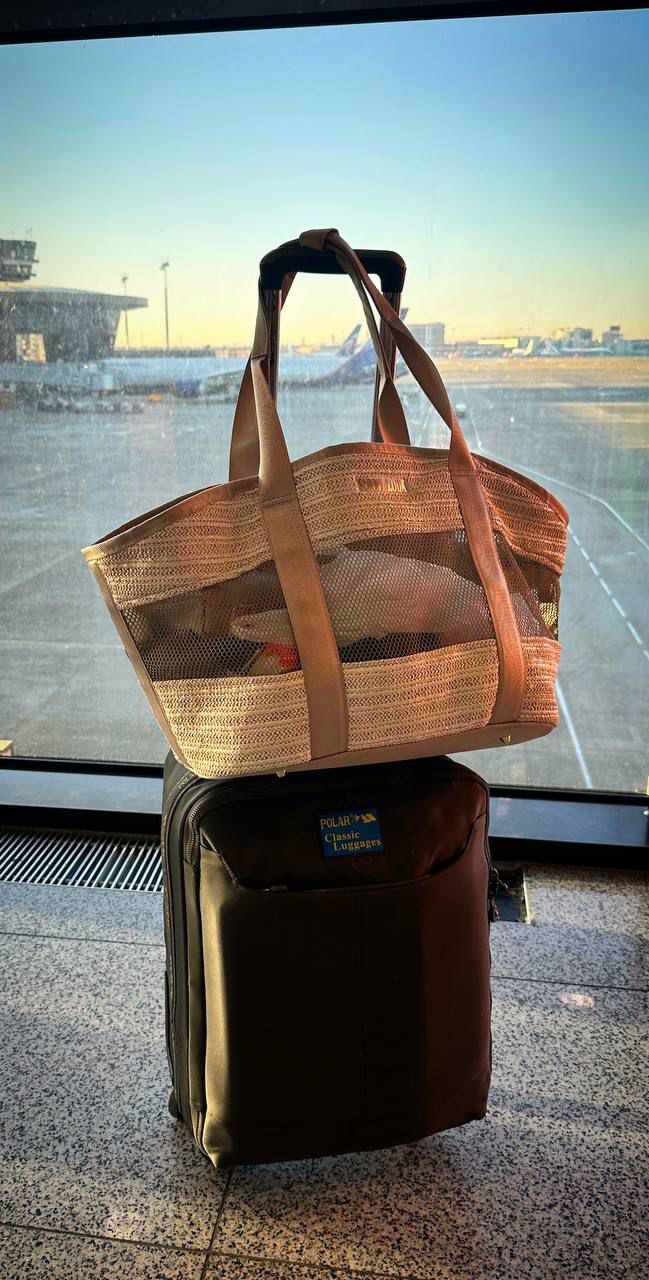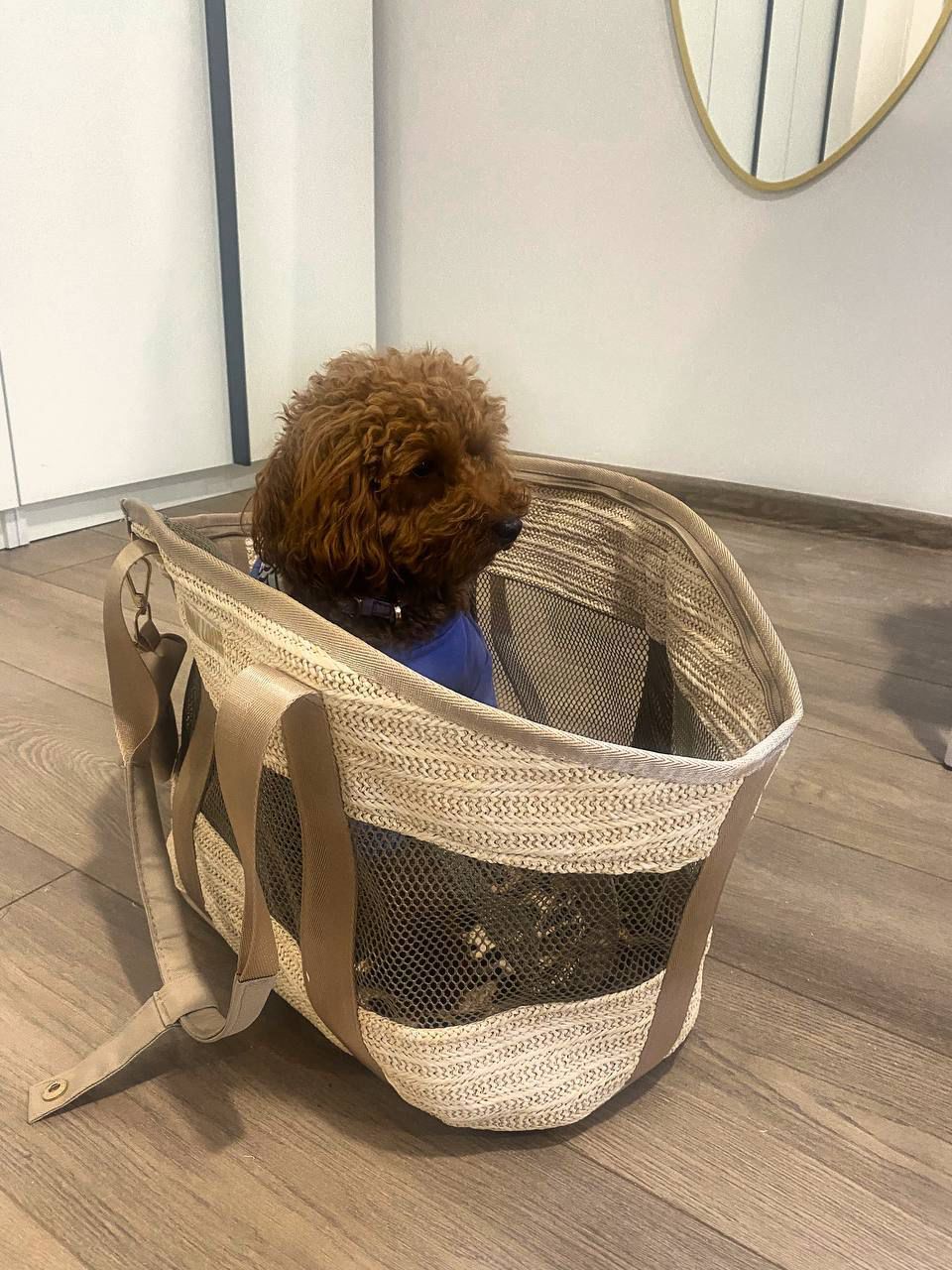 «Та самая» летняя сумка для питомца и хозяйки, чтобы отправиться на пикник, на пляж или взять хвостика с собой в путешествие. Подходит для перелетов Доступны два цвета: бежевый с бежевыми вставками из эко-кожи • шоколадный с шоколадными вставками из эко-кожи • бежевый с оранжевыми стропой и вставками из эко-кожи» Преимущества: - Легкая - Для тех, кто любит много воздуха - Максимальный обзор для питомца - Поводок-держатель внутри сумки - Твердое дно - Металлические ножки - Устойчивый каркас сумки - Герметичная крышка-сетка - идеально для перелетов - Кожаные вставки на ручках и ободке В комплект входит: - сумка-переноска «Корзинка» - мягкая подушечка для питомца - футляр для пакетиков - косметичка для хозяйки