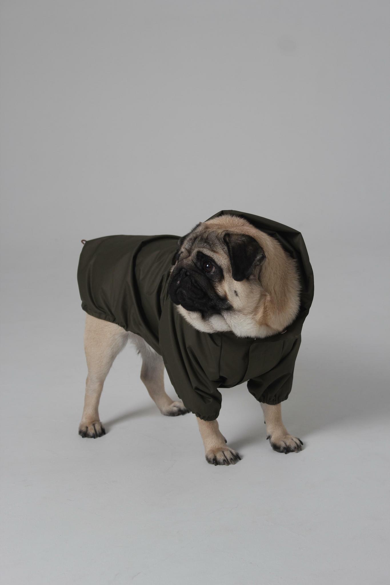 Дождевик-парка для собак в духе минимализма 100% влагозащита, ветроустойчивость На мягких кнопках из нержавеющей стали Не сковывает движений питомца Стиль собаки - продолжение стиля хозяина. Для самых ценных прогулок вместе. Состав: 100% мембрана