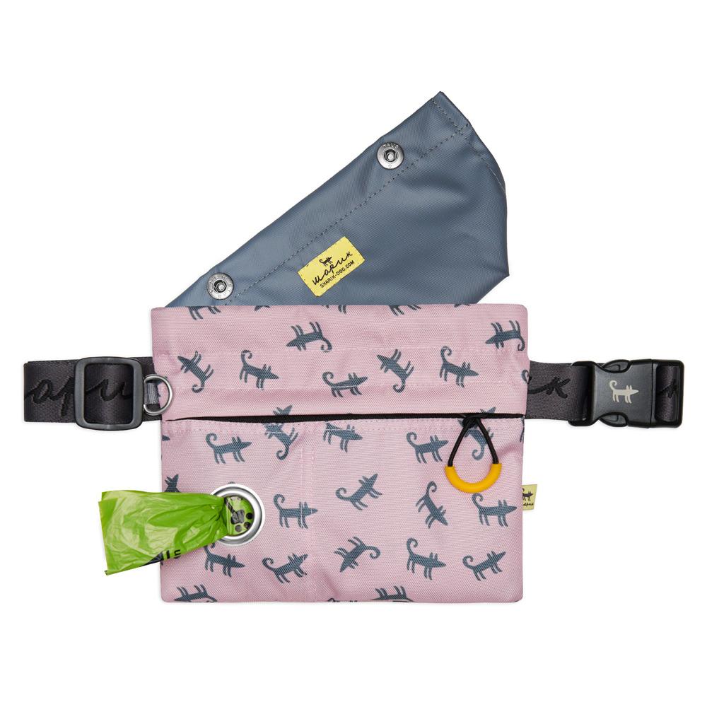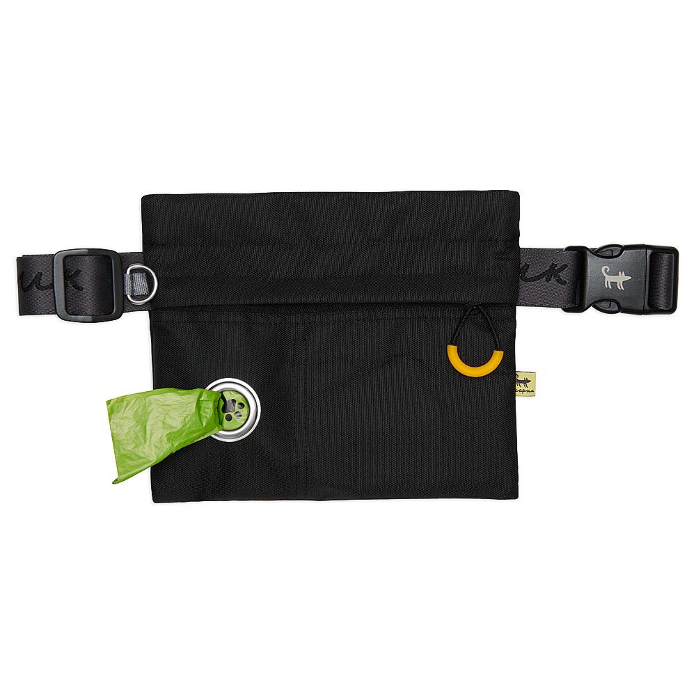 теперь в основном отделении есть съёмный карман для лакомств, который можно легко вынуть и постирать! Но главной звездой остаётся замок-клатч. Это металлическая рамка на двух пружинах, которая вставлена внутрь сумки. Рамка держит сумку в открытом состоянии, когда необходимо давать собаке лакомства одно за другим. Захлопнуть сумку можно за долю секунды одним движением руки. Очень удобно, если вам нужно, например, быстро наклониться и при этом не рассыпать лакомства на радость собачке. Или предотвратить нахальное воровство кусочков прямо из сумки! Только пёсий нос берегите, чтобы по нему не щёлкнуло. Внешний карман поделен на две части. Маленькое отделение для рулона пакетов для уборки, которые удобно доставать через специальное отверстие. В отделение побольше можно положить телефон, ключи и прочие мелочи. Около поясного ремня есть небольшое D-кольцо, к которому можно прицепить, например, переносную миску. В подарок к сумке идёт рулон пакетиков. Материал: Оксфорд с водоотталкивающей пропиткой Размер: 21х18 см Обхват ремня: 54-120 см