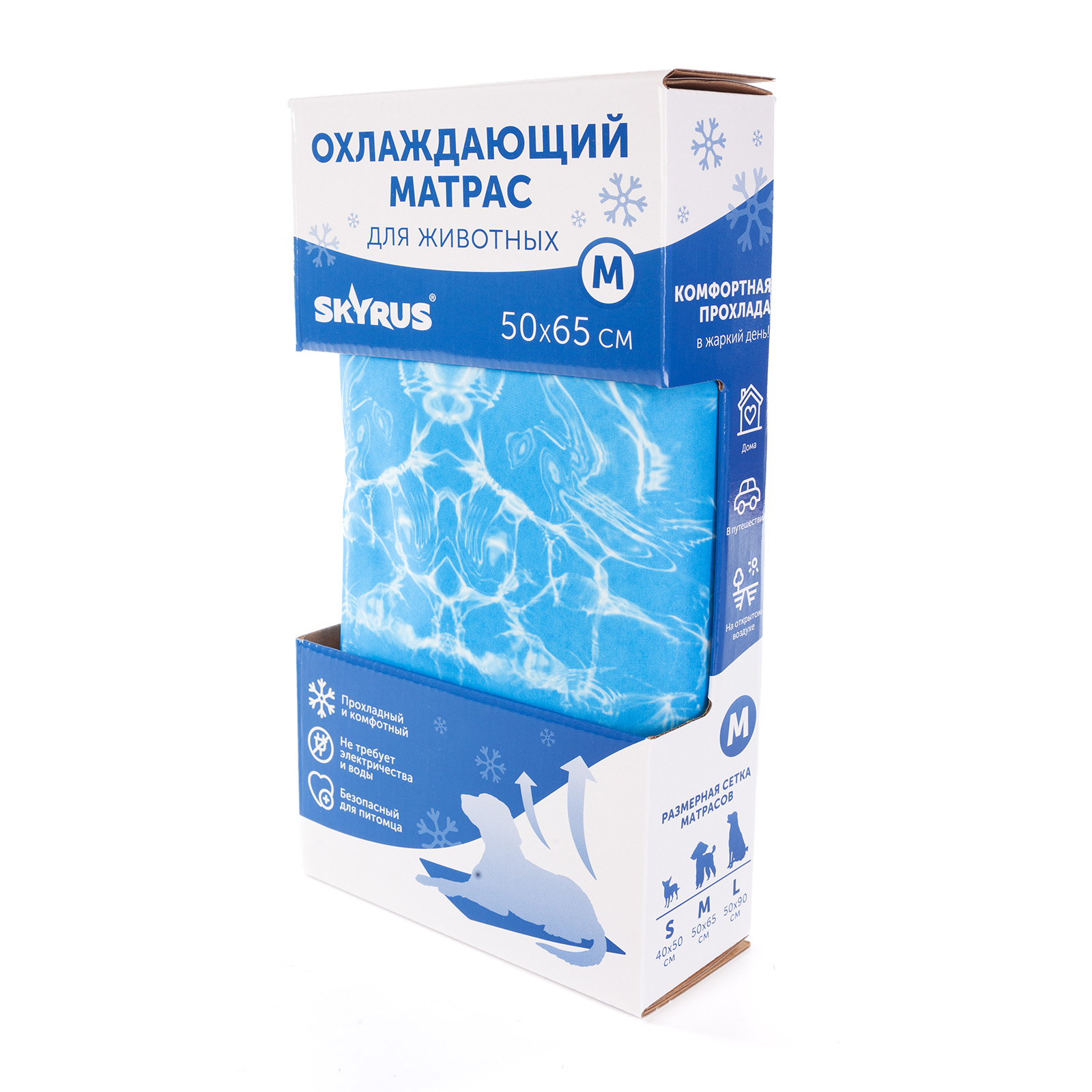 Охлаждающий матрас Skyrus - это инновационное изделие, разработанное специально для поддержания оптимальной температуры тела животного. Охлаждающий матрас особенно актуален для пород с густой шерстью и брахицефалов, которые наиболее чувствительны к перегреву. Внутри матраса находится слой эластичного пенополиуретана, пропитанного специальным нетоксичным самоохлаждающимся гелем. Этот гель обладает способностью поддерживать температуру на 5-10 градусов ниже комнатной. Под весом животного гель активируется и начинает отдавать прохладу, эффективно снижая температуру поверхности матраса. Длительность действия охлаждающего эффекта составляет около часа. Для восстановления охлаждающих свойств достаточно оставить матрас без использования примерно на 15-20 минут. Коврик имеет широкий спектр применения и может пригодиться как дома, так и в дороге. • Дома: охлаждающий коврик может быть особенно полезен в жаркий день после прогулки или, когда кондиционера нет или он просто не справляется. После физической активности коврик может помочь собакам быстрее остыть. • В клетке: охлаждающие коврики подходят для стандартных клеток, но мы рекомендуем использовать их только тогда, когда вы уже знаете, что вашей собаке нравится находиться на коврике за пределами вольера. • На открытом воздухе: коврик можно использовать на природе и за городом. Но он не рассчитан на использование под прямыми солнечными лучами и должен располагаться в тени (что также лучше для вашей собаки). Его можно использовать даже во время приключений на открытом воздухе, например, в походах или кемпинге. • Во время путешествия: иногда температурный режим во время путешествия в поезде или автомобиле может быть неконтролируемым, поэтому охлаждающий коврик станет хорошим вариантом, если ваша собака склонна к перегреву. Просто положите его на пол переноски, чтобы питомец чувствовал себя комфортно во время поездки. Ключевые преимущества охлаждающего матраса Skyrus: 1. Он создан из нетоксичных и безопасных материалов, не вызывающих аллергических реакций. 2. Помогает предотвратить перегрев и тепловой удар у питомца. 3. Подходит для использования в клетках и переносках. 4. Не требует предварительного охлаждения, электричества или заполнения водой, автоматически активируется под весом животного. 5. Легко чистится. Достаточно протереть коврик влажной тканью и дать ему просохнуть. Охлаждающий матрас для собак Skyrus - это практичное и эффективное решение, которое поможет питомцу комфортно пережить жаркие дни. Коврик обеспечит животное необходимой прохладой, защитит от перегрева и улучшит общее самочувствие. Характеристики коврика: Материал матраса: полиэстер. Наполнитель: эластичный пенополиуретан, охлаждающий нетоксичный гель, вода. Срок службы матраса 2 года.