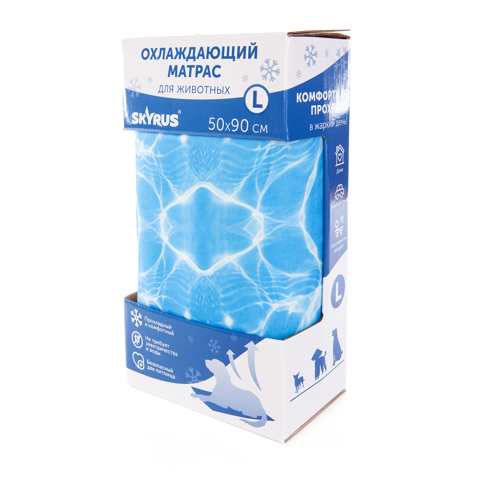 Охлаждающий матрас Skyrus - это инновационное изделие, разработанное специально для поддержания оптимальной температуры тела животного. Охлаждающий матрас особенно актуален для пород с густой шерстью и брахицефалов, которые наиболее чувствительны к перегреву. Внутри матраса находится слой эластичного пенополиуретана, пропитанного специальным нетоксичным самоохлаждающимся гелем. Этот гель обладает способностью поддерживать температуру на 5-10 градусов ниже комнатной. Под весом животного гель активируется и начинает отдавать прохладу, эффективно снижая температуру поверхности матраса. Длительность действия охлаждающего эффекта составляет около часа. Для восстановления охлаждающих свойств достаточно оставить матрас без использования примерно на 15-20 минут. Коврик имеет широкий спектр применения и может пригодиться как дома, так и в дороге. • Дома: охлаждающий коврик может быть особенно полезен в жаркий день после прогулки или, когда кондиционера нет или он просто не справляется. После физической активности коврик может помочь собакам быстрее остыть. • В клетке: охлаждающие коврики подходят для стандартных клеток, но мы рекомендуем использовать их только тогда, когда вы уже знаете, что вашей собаке нравится находиться на коврике за пределами вольера. • На открытом воздухе: коврик можно использовать на природе и за городом. Но он не рассчитан на использование под прямыми солнечными лучами и должен располагаться в тени (что также лучше для вашей собаки). Его можно использовать даже во время приключений на открытом воздухе, например, в походах или кемпинге. • Во время путешествия: иногда температурный режим во время путешествия в поезде или автомобиле может быть неконтролируемым, поэтому охлаждающий коврик станет хорошим вариантом, если ваша собака склонна к перегреву. Просто положите его на пол переноски, чтобы питомец чувствовал себя комфортно во время поездки. Ключевые преимущества охлаждающего матраса Skyrus: 1. Он создан из нетоксичных и безопасных материалов, не вызывающих аллергических реакций. 2. Помогает предотвратить перегрев и тепловой удар у питомца. 3. Подходит для использования в клетках и переносках. 4. Не требует предварительного охлаждения, электричества или заполнения водой, автоматически активируется под весом животного. 5. Легко чистится. Достаточно протереть коврик влажной тканью и дать ему просохнуть. Охлаждающий матрас для собак Skyrus - это практичное и эффективное решение, которое поможет питомцу комфортно пережить жаркие дни. Коврик обеспечит животное необходимой прохладой, защитит от перегрева и улучшит общее самочувствие. Характеристики коврика: Материал матраса: полиэстер. Наполнитель: эластичный пенополиуретан, охлаждающий нетоксичный гель, вода. Срок службы матраса 2 года.