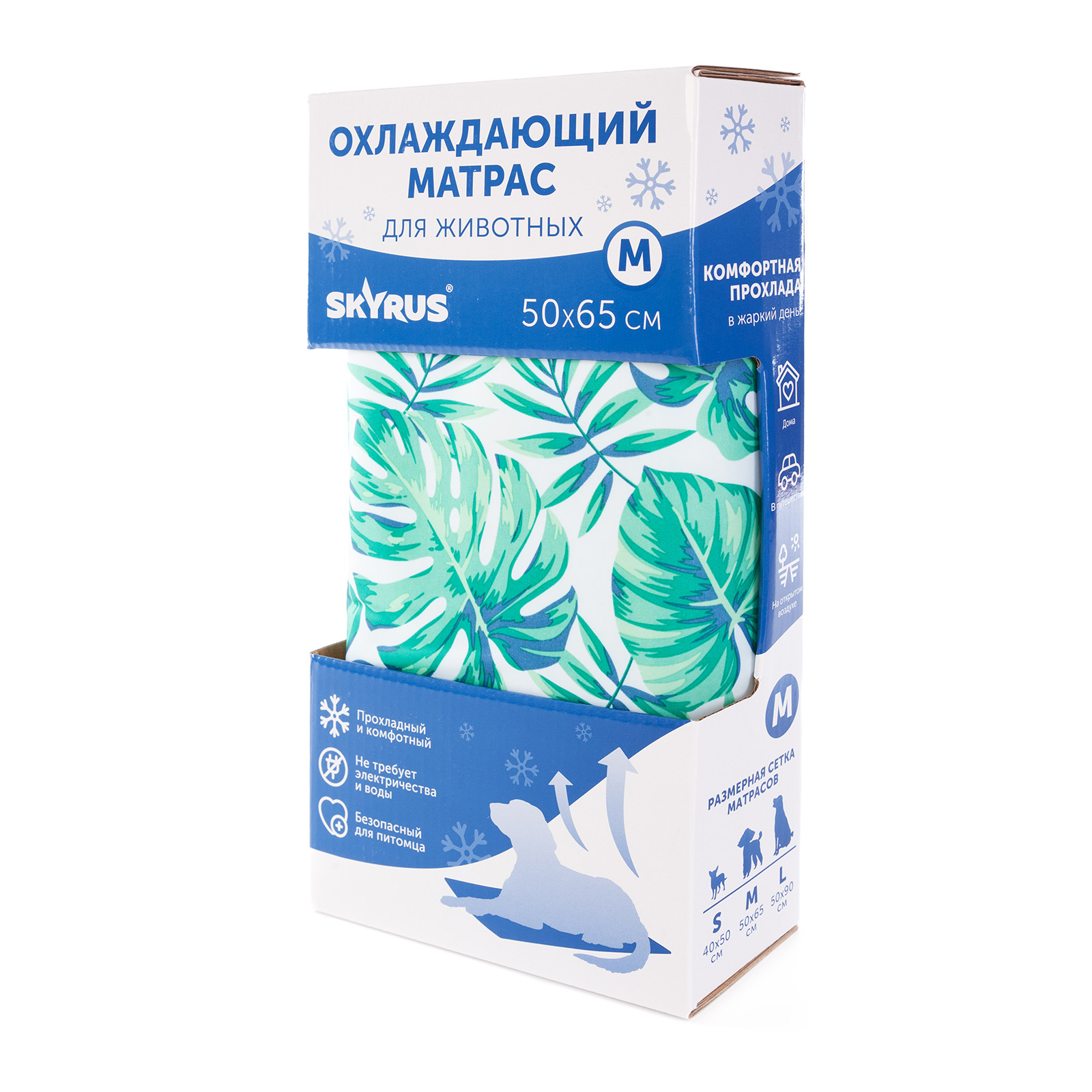 Охлаждающий матрас Skyrus - это инновационное изделие, разработанное специально для поддержания оптимальной температуры тела животного. Охлаждающий матрас особенно актуален для пород с густой шерстью и брахицефалов, которые наиболее чувствительны к перегреву. Внутри матраса находится слой эластичного пенополиуретана, пропитанного специальным нетоксичным самоохлаждающимся гелем. Этот гель обладает способностью поддерживать температуру на 5-10 градусов ниже комнатной. Под весом животного гель активируется и начинает отдавать прохладу, эффективно снижая температуру поверхности матраса. Длительность действия охлаждающего эффекта составляет около часа. Для восстановления охлаждающих свойств достаточно оставить матрас без использования примерно на 15-20 минут. Коврик имеет широкий спектр применения и может пригодиться как дома, так и в дороге. • Дома: охлаждающий коврик может быть особенно полезен в жаркий день после прогулки или, когда кондиционера нет или он просто не справляется. После физической активности коврик может помочь собакам быстрее остыть. • В клетке: охлаждающие коврики подходят для стандартных клеток, но мы рекомендуем использовать их только тогда, когда вы уже знаете, что вашей собаке нравится находиться на коврике за пределами вольера. • На открытом воздухе: коврик можно использовать на природе и за городом. Но он не рассчитан на использование под прямыми солнечными лучами и должен располагаться в тени (что также лучше для вашей собаки). Его можно использовать даже во время приключений на открытом воздухе, например, в походах или кемпинге. • Во время путешествия: иногда температурный режим во время путешествия в поезде или автомобиле может быть неконтролируемым, поэтому охлаждающий коврик станет хорошим вариантом, если ваша собака склонна к перегреву. Просто положите его на пол переноски, чтобы питомец чувствовал себя комфортно во время поездки. Ключевые преимущества охлаждающего матраса Skyrus: 1. Он создан из нетоксичных и безопасных материалов, не вызывающих аллергических реакций. 2. Помогает предотвратить перегрев и тепловой удар у питомца. 3. Подходит для использования в клетках и переносках. 4. Не требует предварительного охлаждения, электричества или заполнения водой, автоматически активируется под весом животного. 5. Легко чистится. Достаточно протереть коврик влажной тканью и дать ему просохнуть. Охлаждающий матрас для собак Skyrus - это практичное и эффективное решение, которое поможет питомцу комфортно пережить жаркие дни. Коврик обеспечит животное необходимой прохладой, защитит от перегрева и улучшит общее самочувствие. Характеристики коврика: Материал матраса: полиэстер. Наполнитель: эластичный пенополиуретан, охлаждающий нетоксичный гель, вода. Срок службы матраса 2 года.