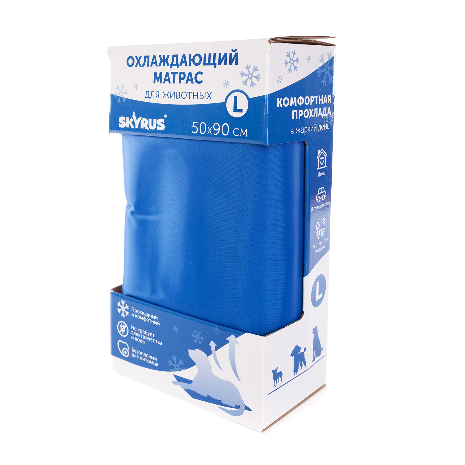 Охлаждающий матрас Skyrus - это инновационное изделие, разработанное специально для поддержания оптимальной температуры тела животного. Охлаждающий матрас особенно актуален для пород с густой шерстью и брахицефалов, которые наиболее чувствительны к перегреву. Внутри матраса находится слой эластичного пенополиуретана, пропитанного специальным нетоксичным самоохлаждающимся гелем. Этот гель обладает способностью поддерживать температуру на 5-10 градусов ниже комнатной. Под весом животного гель активируется и начинает отдавать прохладу, эффективно снижая температуру поверхности матраса. Длительность действия охлаждающего эффекта составляет около часа. Для восстановления охлаждающих свойств достаточно оставить матрас без использования примерно на 15-20 минут. Коврик имеет широкий спектр применения и может пригодиться как дома, так и в дороге. • Дома: охлаждающий коврик может быть особенно полезен в жаркий день после прогулки или, когда кондиционера нет или он просто не справляется. После физической активности коврик может помочь собакам быстрее остыть. • В клетке: охлаждающие коврики подходят для стандартных клеток, но мы рекомендуем использовать их только тогда, когда вы уже знаете, что вашей собаке нравится находиться на коврике за пределами вольера. • На открытом воздухе: коврик можно использовать на природе и за городом. Но он не рассчитан на использование под прямыми солнечными лучами и должен располагаться в тени (что также лучше для вашей собаки). Его можно использовать даже во время приключений на открытом воздухе, например, в походах или кемпинге. • Во время путешествия: иногда температурный режим во время путешествия в поезде или автомобиле может быть неконтролируемым, поэтому охлаждающий коврик станет хорошим вариантом, если ваша собака склонна к перегреву. Просто положите его на пол переноски, чтобы питомец чувствовал себя комфортно во время поездки. Ключевые преимущества охлаждающего матраса Skyrus: 1. Он создан из нетоксичных и безопасных материалов, не вызывающих аллергических реакций. 2. Помогает предотвратить перегрев и тепловой удар у питомца. 3. Подходит для использования в клетках и переносках. 4. Не требует предварительного охлаждения, электричества или заполнения водой, автоматически активируется под весом животного. 5. Легко чистится. Достаточно протереть коврик влажной тканью и дать ему просохнуть. Охлаждающий матрас для собак Skyrus - это практичное и эффективное решение, которое поможет питомцу комфортно пережить жаркие дни. Коврик обеспечит животное необходимой прохладой, защитит от перегрева и улучшит общее самочувствие. Характеристики коврика: Материал матраса: полиэстер. Наполнитель: эластичный пенополиуретан, охлаждающий нетоксичный гель, вода. Срок службы матраса 2 года.